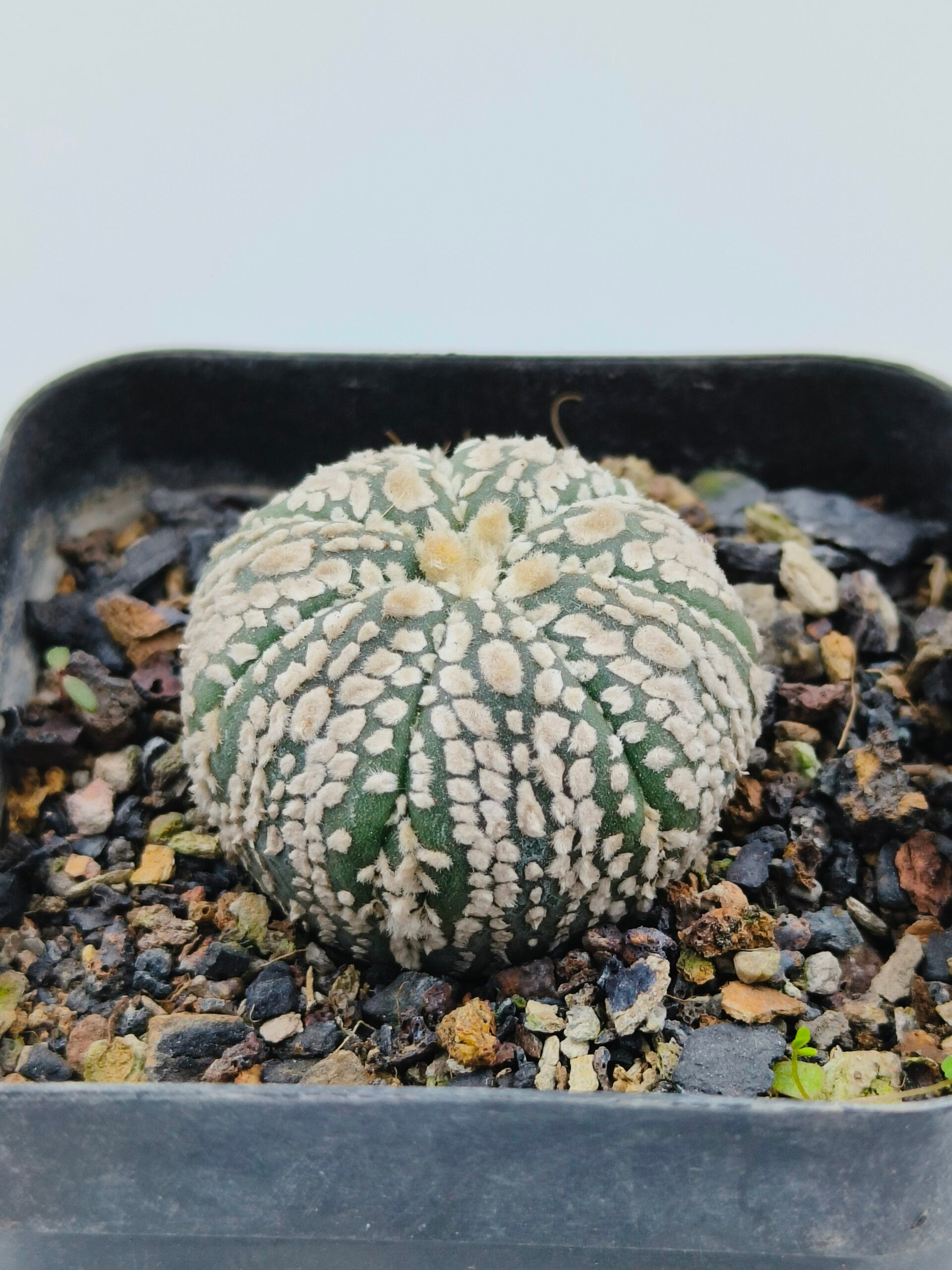 Astrophytum asterias cv ‘Super kabuto’ is a cultivar name rich in meaning. ‘Astrophytum’ comes from Greek, meaning ‘star plant’, reflecting the star-like shape of this cactus. ‘Asterias’ refers to its resemblance to a starfish. The cultivar name ‘Superkabuto’ is of Japanese origin, with ‘kabuto’ meaning ‘helmet’, often used in reference to the samurai helmet. This name likely describes the plant’s robust and distinctive appearance, reminiscent of a decorated helmet.